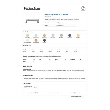 Heritage Brass Cabinet Pull Bauhaus Design 101mm CTC Polished Chrome Finish If replacing an existing Cabinet Pull it may be simpler to install if you select a pull which matches the existing centre to centre of the screw holes 1 x Cabinet Pull All fixing screws and fasteners All fixing screws and fasteners | Size | 101mm |